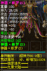 装备介绍:武器全是神器,各种BUFF,包括上线送的神器也有神力